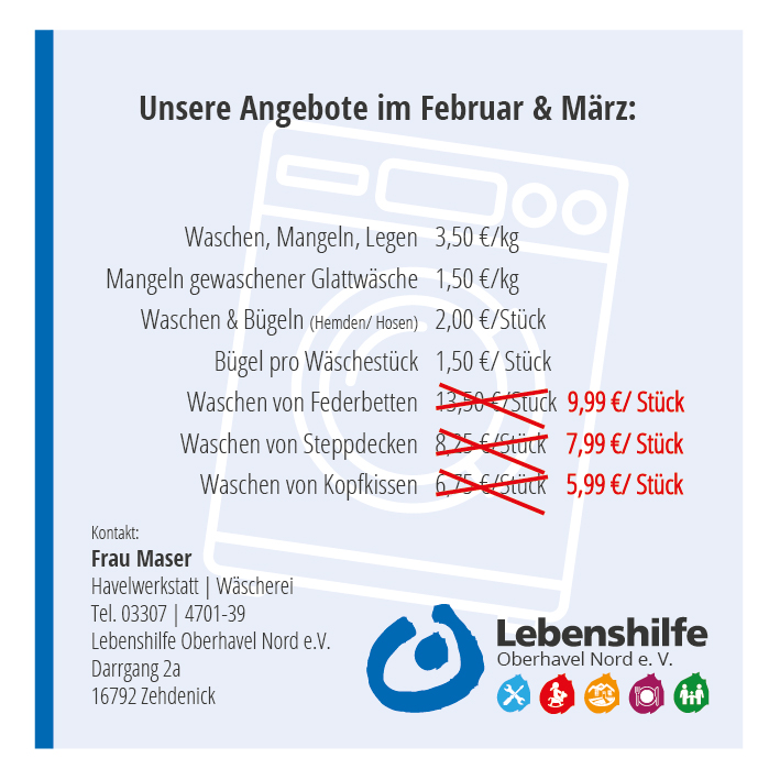 - Waschen, Mangeln und Legen von Bunt- und Weißwäsche